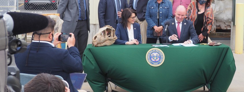 Governor Spencer Cox held a ceremonial signing of HB 257, which created Utahraptor and Lost Creek state parks